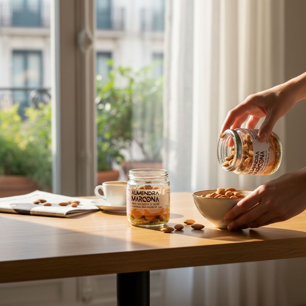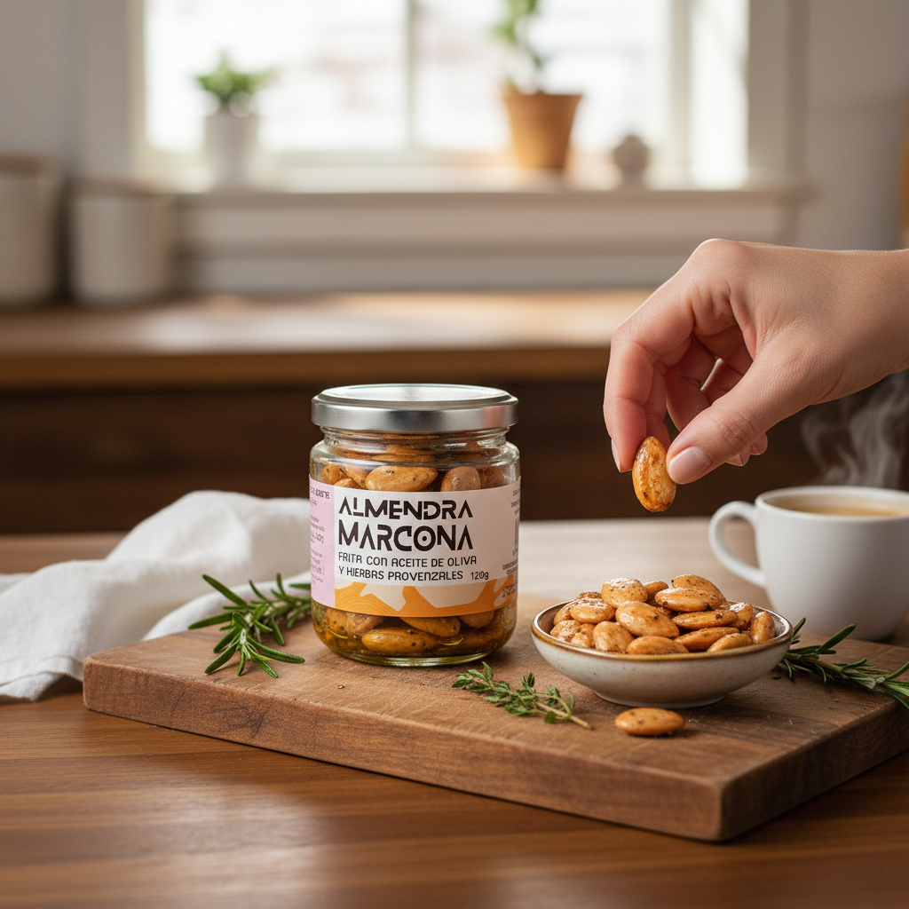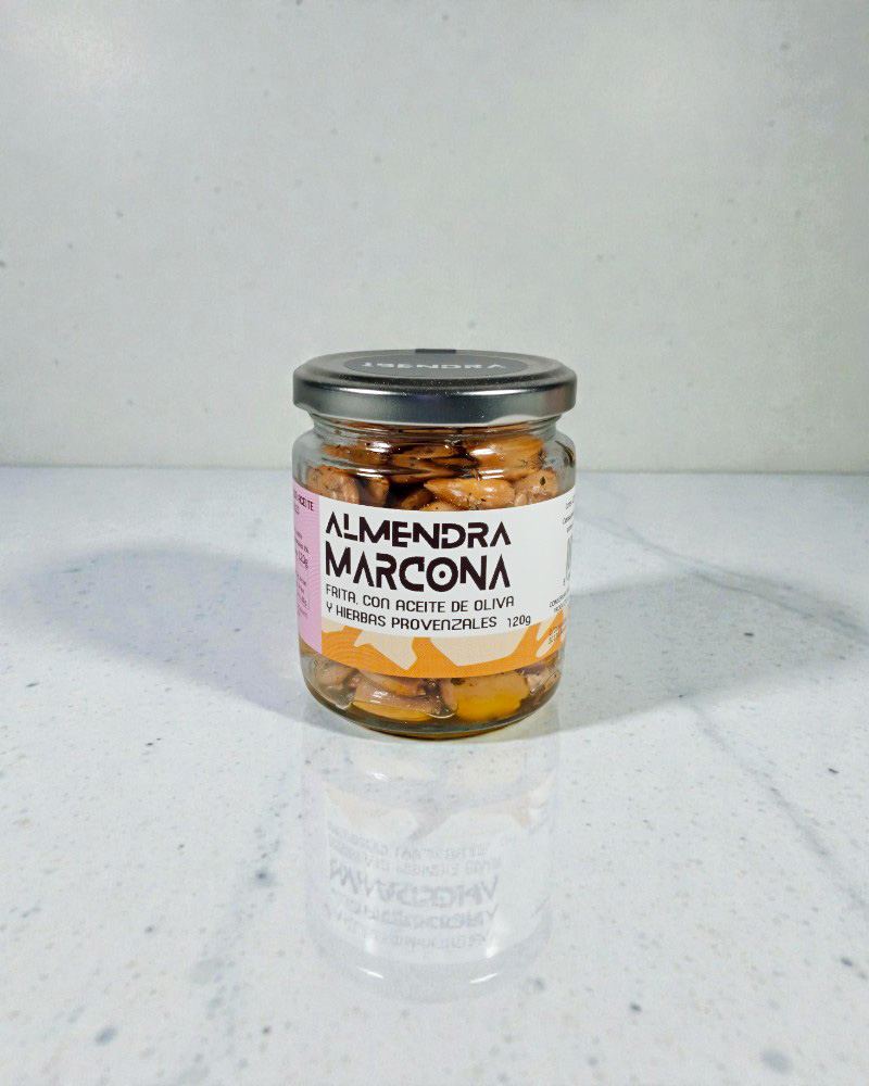 Almendra marcona con hierbas provenzales y aceite de oliva, considerada un auténtico producto gourmet, elaborada de forma artesanal en Murcia. La almendra Marcona es conocida como la “reina de las almendras” por su textura suave, su forma redondeada y su sabor naturalmente dulce, ideal para paladares exigentes.