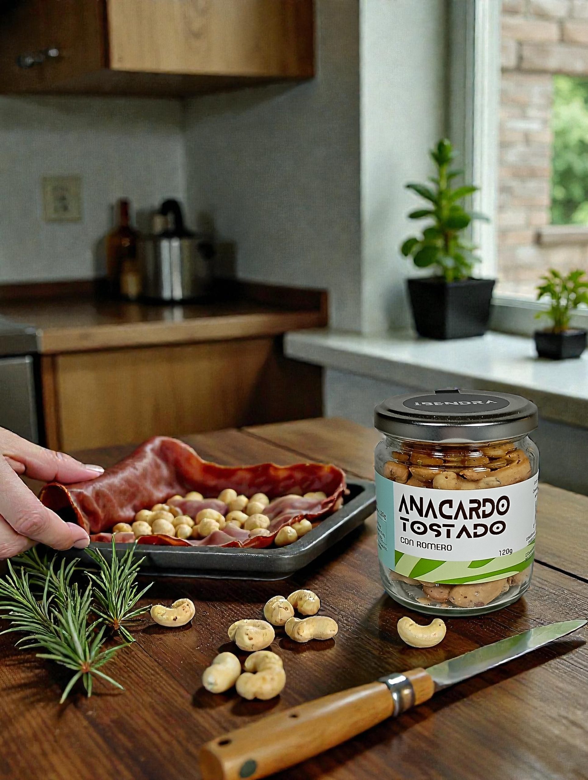 Anacardo tostado con romero, un auténtico producto gourmet, elaborado de forma artesanal en Murcia.